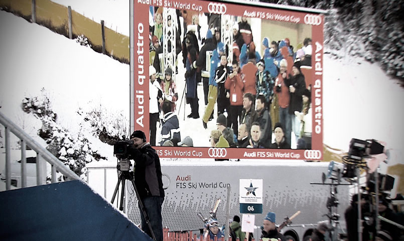Veranstalter von Welt- und Europacuprennen sind seit vielen Jahren unsere Kunden. Wir produzieren mit mehreren Kameras, erstellen vor Ort einen Rohschnitt und verteilen das Material an verschiedene TV-Sender, um die Veranstaltung aufzuwerten. Oft realisieren wir bei diesen Events auch längere sendefertige Produktionen, etwa für RAISPORT, EUROSPORT oder andere TV-Anstalten.